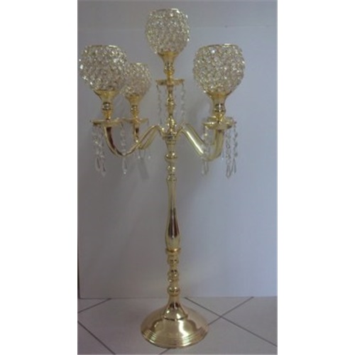 Candelabro P/5Velas c/Cristais 85cm Ouro