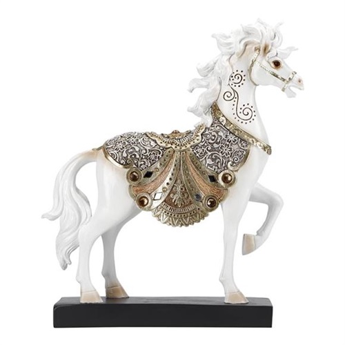 Cavalo Ceramica 28.5cm Branco c/Ouro