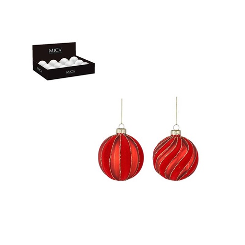 Bola Vidro Riscada D8cm Vermelha 2Ass